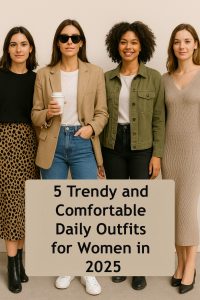 👗 1. Casual Chic: High-Waisted Jeans & Oversized Blazer Why It Works:This is one of the most timeless daily outfits for women. High-waisted mom jeans paired with an oversized blazer create an effortless yet smart look that works for both meetings and coffee runs. Style Tip: Add a gold chain necklace or a sleek belt bag for a modern touch. 👗 2. Effortless Elegance: Midi Dress & White Sneakers Why It Works:Another staple in the world of daily outfits for women, the...